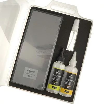 Viele Fans japanischer Küchenmesser aus Damaszenerstahl erleben ein unangenehmes Phänomen. Beim Schärfen auf Wassersteinen verschleißt das Damaszenermuster auf dem Stein und verliert an Glanz. Dies beeinträchtigt die Ästhetik eines meist teuren Damaszenermessers. Glücklicherweise lässt sich die Struktur von Damaszenerstahl wiederherstellen. Suehiro, einer der führenden Hersteller japanischer Küchenmesser und Zubehör, hat ein spezielles Set zum Polieren und Wiederherstellen des Musters von Damaszenermessern in sein Sortiment aufgenommen: den Suehiro Dull/Glossy Finish Whetstone für Damaszenermesser. Sie können ihn natürlich in unserem Shop kaufen. Beachten Sie jedoch, dass das Set zur Wiederherstellung des Musters von mehrlagigem echtem Damaszenerstahl geeignet ist und nicht für dekorative Auflagen, die oft bei billigen Messern verwendet werden.