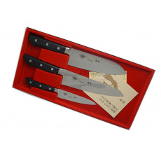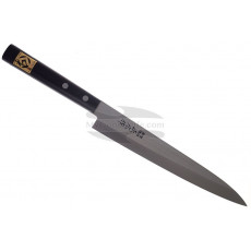 The handle is a compressed laminated wood that realises improved durability and water resistance, by being impregnated with a resin and contained antimicrobial agent effective against such as Escherichia coli. Weight of Masahiro Sashimi knife is 115 g.