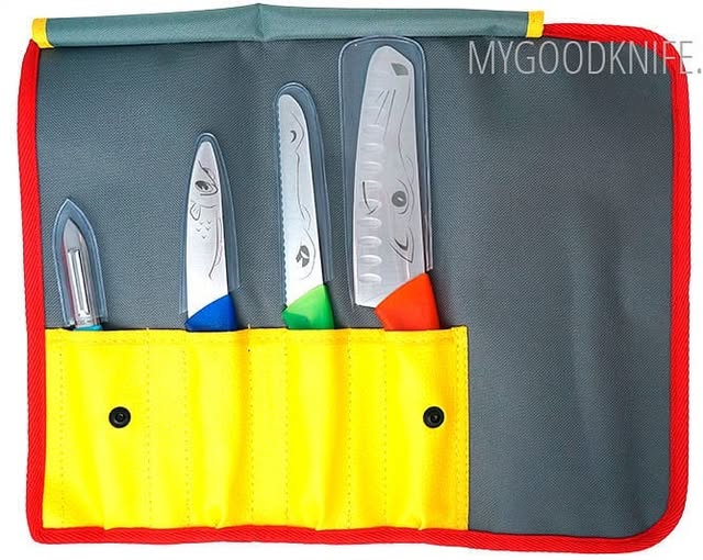 The Portuguese company ICEL has developed a whole series of kitchen knives for children. Their selection includes a safe chef's knife in the shape of an adult santoku, as well as knives for vegetables and other small items.