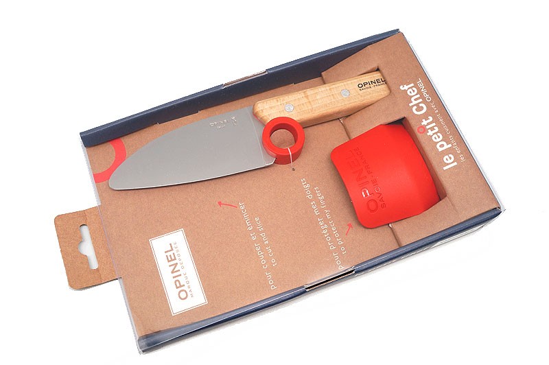 In my opinion, the safest and most convenient series of children's kitchen knives was developed by the French company Opinel. Le Petit Chef knives not only feature a standard rounded tip but also a protective ring that prevents fingers from slipping onto the blade. Furthermore, Opinel Le Petit Chef sets include a finger protector. This gives parents peace of mind – cutting themselves is virtually impossible with this multi-layered protection. Opinel finger protectors are also available for purchase separately in our store.