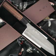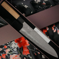 Yoshimi Kato works with both classic carbon steel and modern powder steels, including VG-10, R2 (SG2), Aogami Super and others. Many of his knives are created using sanmai technology, where a harder cutting part is enclosed in softer linings - most often made of Damascus. Yoshimi Kato mainly makes knives with double-bevel: santoku, nakiri, Japanese chef's knives gyuto. Master Kato installs both Japanese wa- and western handles on his knives. All Yoshimi Kato knives are supplied in branded boxes.