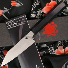 The knife handle is made of stabilized ebony (pakkawood) in the traditional Japanese WA octagon style. The bolster is made of nickel silver. Decorative elements such as a mosaic pin and a red ring add to its aesthetic appeal. The blade length of the MCUSTA Zanmai Hybrid Splash Petty knife is 110 mm. It weighs only 70 g. It is not allowed to be washed in a dishwasher. Wash by hand and dry immediately.