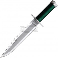Rambo III Sylvester Stallone Signature Edition. 18" overall. 13" custom large stainless bowie blade with anti-glare sighting slot. Laminated hardwood handles with stainless guard and pommel. Black cord lanyard. Top grain leather sheath with leg tie. Officially licensed reproduction. Limited edition of 10,000.