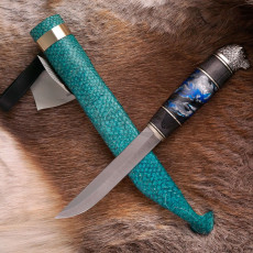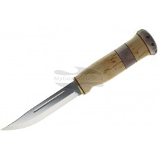 The TOPS Mini Tanimboca Puukko was designed by Goran Mihajlovic, who also designed the original Tanimboca made by TOPS. The Mini Tanimboca Puukko is a great tool for bushcraft, planing and even some EDC tasks. This knife is smaller than the others and has no guard. The knife can be held by the blade with several grips. If you like DIY craft, especially in the forest, this knife is a must-have. It has the classic Tanimboca Puukko look, but in a much smaller package. The rounded black micarta handle makes it very comfortable despite its size. The brown leather sheath is designed to be worn on the neck, but also has a loop that fits most belts.