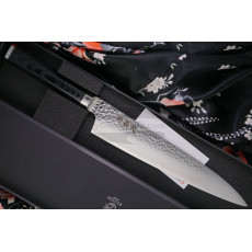 Los cuchillos de chef – también conocidos como cuchillos de cocinero, son los cuchillos más populares del mundo. Esta es una herramienta universal para cocinar tanto en casa como en una cocina profesional. La longitud de la hoja del cuchillo del chef suele ser de 18 a 24 cm. Sin embargo, dependiendo de los requisitos, la cuchilla puede ser más larga. Gracias a la geometría universal de la hoja, el cuchillo de chef es adecuado para cualquier tarea: rebanar, triturar. Hay dos tipos comunes de la forma de la hoja del cuchillo de chef europeo: francés y alemán. Los cuchillos de cocina de estilo alemán son más potentes y tienen un filo uniformemente redondeado; los cuchillos de estilo francés tienen una hoja más delgada y recta y solo en el extremo se dobla hacia la punta.