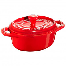 Cooking is a joy when using the round, cherry-red cocotte from the popular La Cocotte series. It looks good in any kitchen and dining area and will catch the eyes of your guests. Cocottes originate from France and are traditionally used for slow cooking. They are ideal not only for French specialties such as coq au vin, but also for other nation's recipes. This Staub cocotte is around 14 cm high, 20 cm in diametre and has a 2.2 l capacity. It is made of cast iron, the ideal material for slow cooking. Cast iron retains heat for long periods and then gradually releases it during the cooking process. It is also very good at keeping food cold so is ideal for preparing desserts. Cast-iron cookware is suitable for any type of oven and cooker including induction hobs. It is robust, resistant and easy to care for. These features are enhanced in Staub cocottes through their enamelled interiors. Enamel also brings out the aroma of food to produce delicious meals. Ideal for searing and slow cooking of meat, fish or vegetables Juicy and tender cooking result thanks to the lid’s special drip structure The matt black inner enamelling is ideal for particularly crisp searing and is especially durable Suitable for all types of hobs, incl. induction, can also be used in the oven/grill