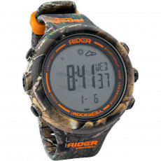 Smith & Wesson Scout is a wristwatch equipped with a black rubber strap with orange stitching. The dial is 48 mm in diameter and is equipped with two luminous hands (hours, minutes), an orange second hand, date display and orange numerals. Water resistant up to 50 meters (5 ATM). Reliable Japanese Quartz movement.