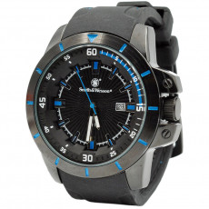 Smith & Wesson SWAT is a wristwatch in a dark steel case with a rotating bezel. The dial is equipped with three luminescent hands (hours, minutes, seconds), date display and luminescent markers. Water resistant up to 30 meters (3 ATM). Reliable Japanese movement.