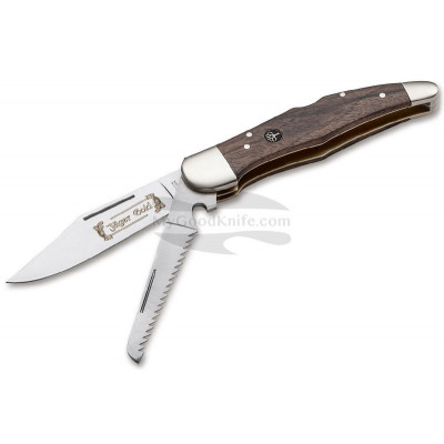 Folder Böker Jagdmesser Duo is a hunting knife for hunters with a passion for tradition. The pocketknife features a main blade of 440C and a saw, both secured by a backlock. The end of the saw doubles as a bottle-opener. Comes with a high-quality leather belt holster. Weight is 200 g.